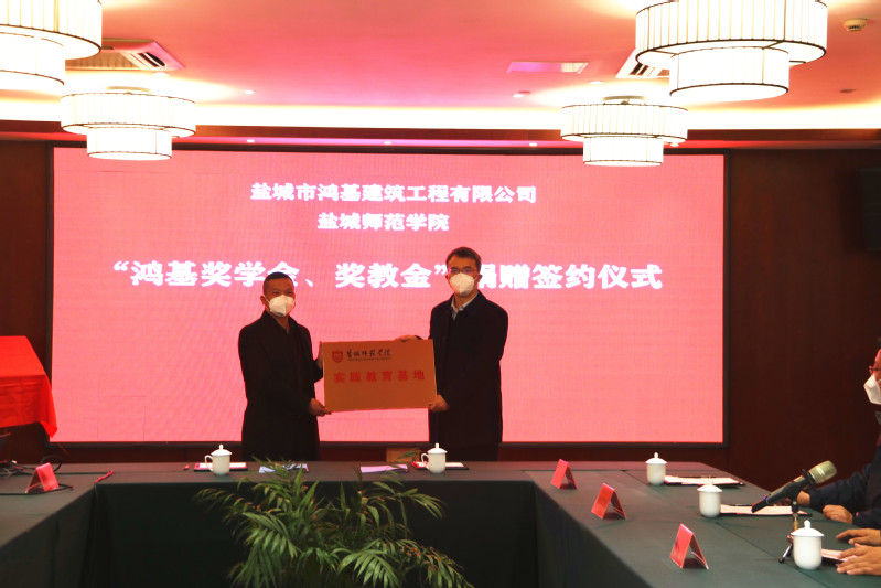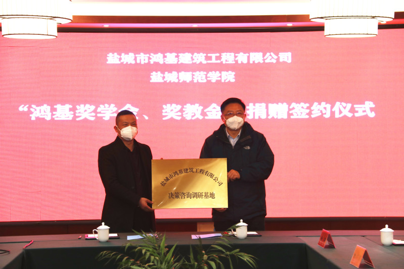 12月21日下午,“鸿基奖学金、奖教金”签约仪式在beat365举行。学校党委副书记于建江,盐城市鸿基建筑工程有限公司董事长肖广军出席签约仪式。学校发改办主任黄新如主持仪式。