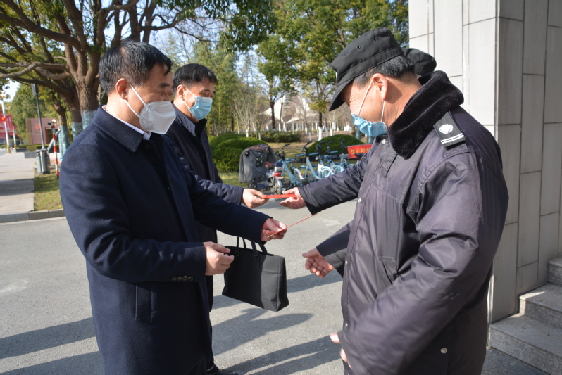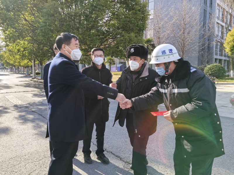 1月21日上午,正值中华民族传统节日除夕,学校党委书记戴斌荣一行来到新长校区和通榆校区保卫安全技防值班室、图书馆等场所,代表学校党委和行政看望慰问节日期间坚守在工作岗位一线的干部职工、安保人员和值班人员,并通过他们向所有春节期间坚守工作岗位的教职工及家属,致以美好的新春祝福和崇高敬意。