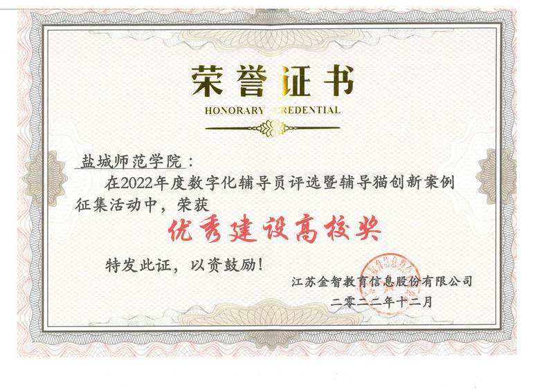 在金智教育主办的2022年度全国高校数字化辅导员评选暨辅导猫创新案例征集活动中,beat365制作的微视频作品《辅导员的网络思政育人之路》荣获“优秀建设高校奖”,该作品将入选辅导猫案例库,面向全国宣传推广。