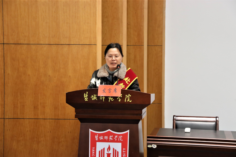 第27批赴新疆实习支教团学生代表、外国语学院张涵琳同学以及带队教师代表、教育科学学院杜晓梅老师分别发言。全体与会人员与第27批支教团师生合影留念。