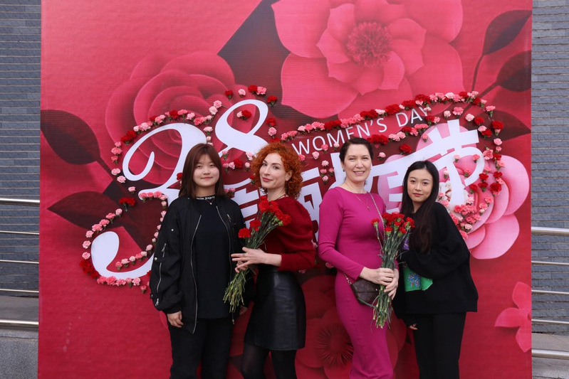 音乐学院分工会在学院门口为老师们准备了布满康乃馨的鲜花展架。课后同学们把精心准备的惊喜带到老师面前。收到花的俄罗斯外教老师阿拉说道:这是我第一次来到中国,没想到刚来就收到花了,让我感受到中国过“三八”国际妇女节的仪式感,红色的康乃馨和我今天的衣服很搭,感谢让我这个“外国人”感受到了节日的温馨!