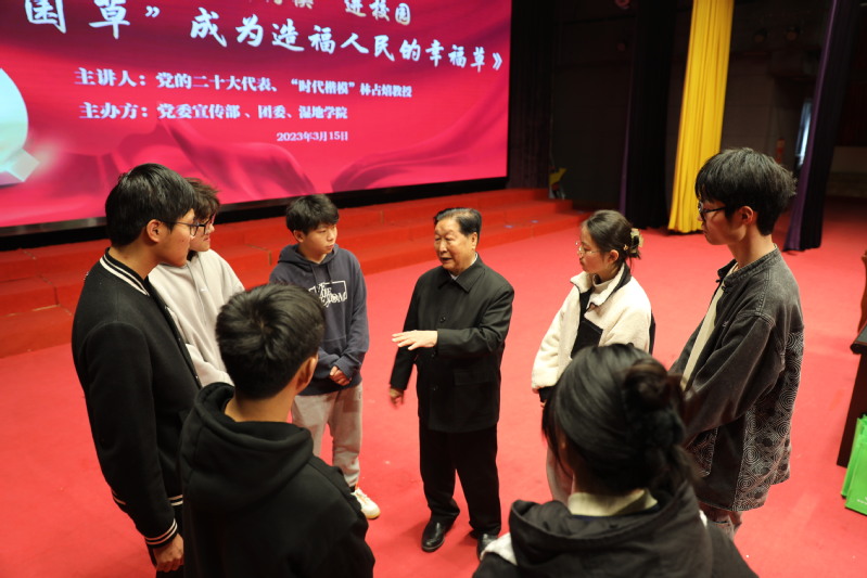 报告会上,林占熺通过珍贵的视频资料向全校师生介绍在习近平总书记亲切关怀和支持之下,菌草事业茁壮成长的发展之路。二十多年来,这种可用来培养食用或药用真菌的草本植物,逐渐走向世界,在脱贫、治沙、畜牧、发电等领域释放巨大潜力。他饱含感情地回顾了自己探索推广菌草技术的艰辛历程,详细介绍了菌草在东西部扶贫协作中发挥的重要作用。如今,菌草已在一百多个国家扎根,播撒希望和友谊,传递信心和力量,助力众多国家消除贫困,使菌草技术成为造福广大发展中国家人民的“幸福草”。