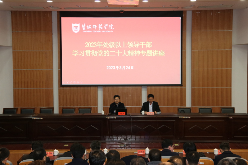 3月24日下午,盐城市第一中学党委书记、校长陈建权应邀在beat365新长校区图书馆报告厅宣讲党的二十大精神,这是beat365处级领导干部学习贯彻党的二十大精神集中轮训的第四场专家报告会。学校党委书记戴斌荣主持报告会,全体在盐校领导出席报告会,全校处级以上领导干部参加宣讲报告会。