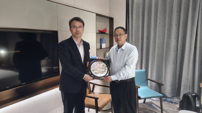 会谈期间,于建江向万荣一行赠送纪念品。与会人员深入细致的交流了两校联培研究生的具体工作。