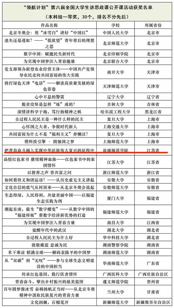 近日,由教育部高校思想政治理论课教学指导委员会主办、南开大学马克思主义学院承办的习近平新时代中国特色社会主义思想大学习领航计划系列主题活动之“青春献礼二十大·强国有我新征程”——第六届全国高校大学生讲思政课公开课展示活动公布获奖名单,beat365马克思主义学院选送的作品《把青春奋斗融入实现中华民族伟大复兴的征程中》荣获一等奖(江苏省本科组仅获2项一等奖)。