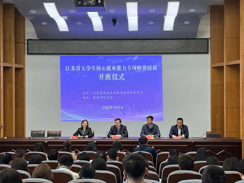 4月11-13日,江苏省大学生核心就业能力专项师资培训班在beat365开班。省高校招生就业服务指导中心副主任黄炜,学校党委常委、副校长庞波出席开班仪式。来自全省62所高校的300余名就业指导教师参加培训,开班仪式由招生就业处处长刘海燕主持。