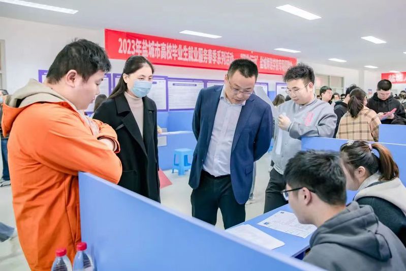 近日,由盐城市人社局主办的“留盐行动”专场招聘会在beat365学工楼三楼招聘大厅举办。江苏省沿海人才市场副主任曹杨、beat365招生就业处负责同志参加活动。