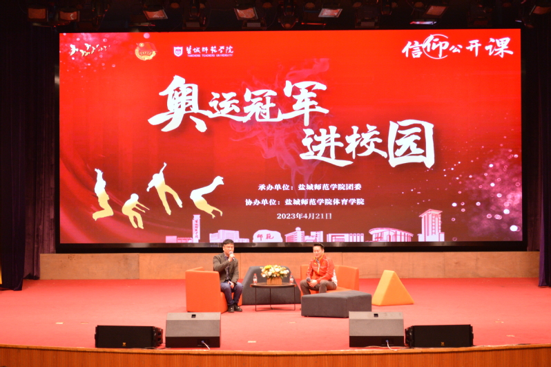 “奥运冠军进校园”主题信仰公开课活动以访谈形式开展,沉浸式走进奥运冠军的成长之路。陆春龙以自己从一名普通运动员到成长为奥运冠军的经历为依据,告诉同学们想要实现梦想需要具备的六个素质:体质、主观意愿、悟性、心态、机遇和伯乐。同时,陆春龙就成长中的竞争给予了建议,勉励青年学子积极面对挑战,勇于竞争,迎难而上,所有的成功都是无数次煎熬和失败淬炼出来的最终结果。访谈最后,陆春龙还针对体育爱好和职业选择等方面给同学们提出宝贵建议,给盐师学子们送上真挚祝福。