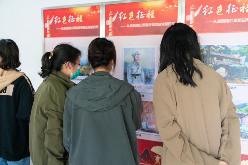 画展前,师生们纷纷驻足观看、仔细欣赏。商学院会计211班班长喻华表示,通过此次参观学习对新四军发展有了更深刻地认识,更加坚定了要将红色基因、英雄精神传承下去的信念,为实现中华民族伟大复兴的中国梦贡献青春力量。