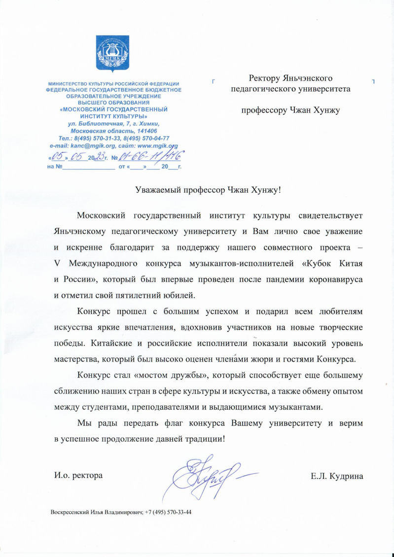 近日,beat365与莫斯科国立文化学院联合举办的“中俄杯”国际声乐、钢琴、小提琴大赛在莫斯科国立文化学院音乐厅举行。本次大赛以视频参赛和现场参赛两种方式进行。学校党委副书记、校长张宏如以视频方式为开幕式致辞。