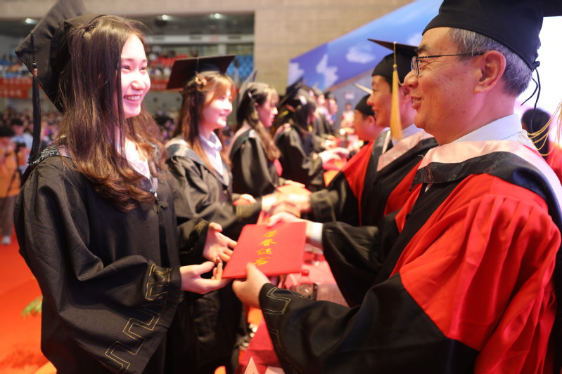 盛夏骊歌,逐梦远航。6月9日上午,学校2023届本科生毕业典礼在新长校区体育馆隆重举行。校领导戴斌荣、张宏如、于建江、庞波、张桂华、汤克明、徐华,学位委员会成员、机关部门负责人、各二级学院负责人、教职工代表、二级学院学工人员代表以及2023届毕业生代表、留学生代表出席典礼。典礼由党委常委、副校长庞波主持。学校党委副书记、校长张宏如致辞。