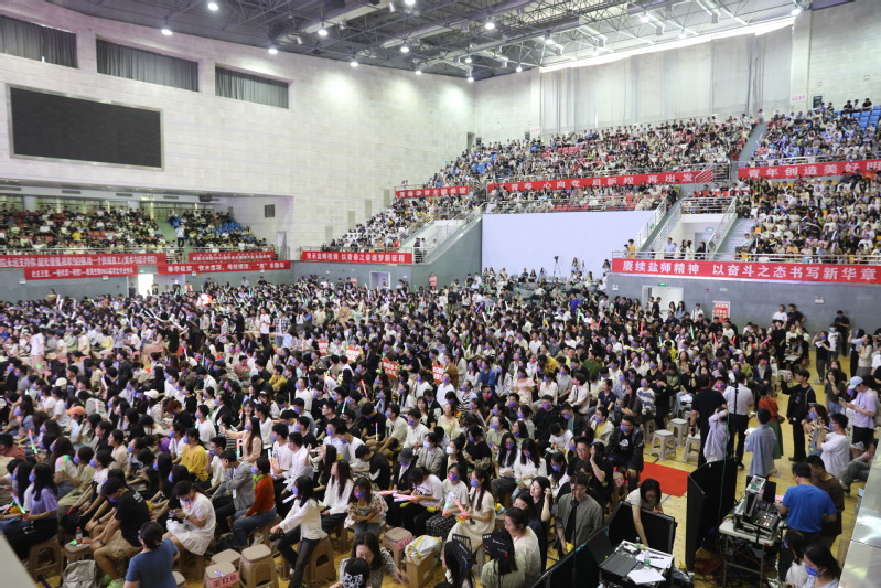 毕业典礼开始前,学校举办了毕业歌会,全场收看了“回望”主题暖场视频、“盐师出高徒(2023版)”主题视频,热烈庆祝2023届毕业生们圆满完成学业,踏上人生新征途。此外,学生家长、广大校友、社会各界人士共3.6万余人线上收看毕业典礼直播。
