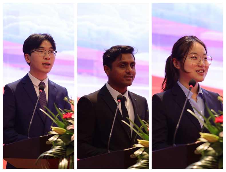 海洋与生物工程学院毕业班班主任、副教授夏文龙老师,江苏省优秀毕业生、2023年江苏省委组织部选调录用者商学院郝俊尧同学,国际教育学院孟加拉国留学生穆巴同学,文学院2021级汉语言文学师范专业本科生任艺同学分别作为教师代表、毕业生代表、留学生代表和在校生代表发言。beat365政史系00届校友,上海交通大学体育系主任,博士生导师王坤教授通过视频为毕业生送上毕业祝福。