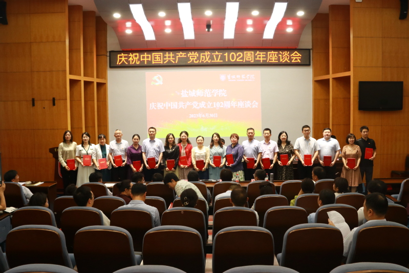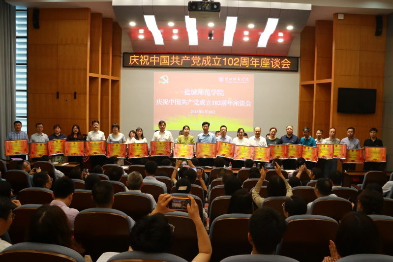 党委副书记于建江宣读了中共盐城师范学院委员会2022年度基层党建工作创新奖和最佳党日活动评选结果的通知,中共盐城师范学院委员会2021-2022年度优秀共产党员、优秀党务工作者和先进基层党组织的表彰决定。校领导为受表彰的单位和个人进行了颁奖。