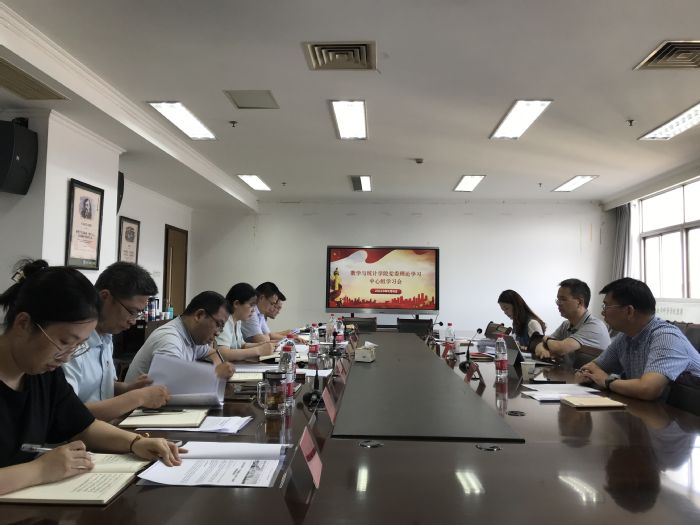 会上,接玉芹领学“学习强国”平台相关学习资料。与会人员集中观看相关学习视频。数学与统计学院党委副书记、院长姜海波以《学习贯彻习近平总书记对江苏工作重要讲话精神,推动数统院事业高质量发展》为题重点发言。学院党委副书记左飞,副院长张勇、王超结合分管工作交流发言。