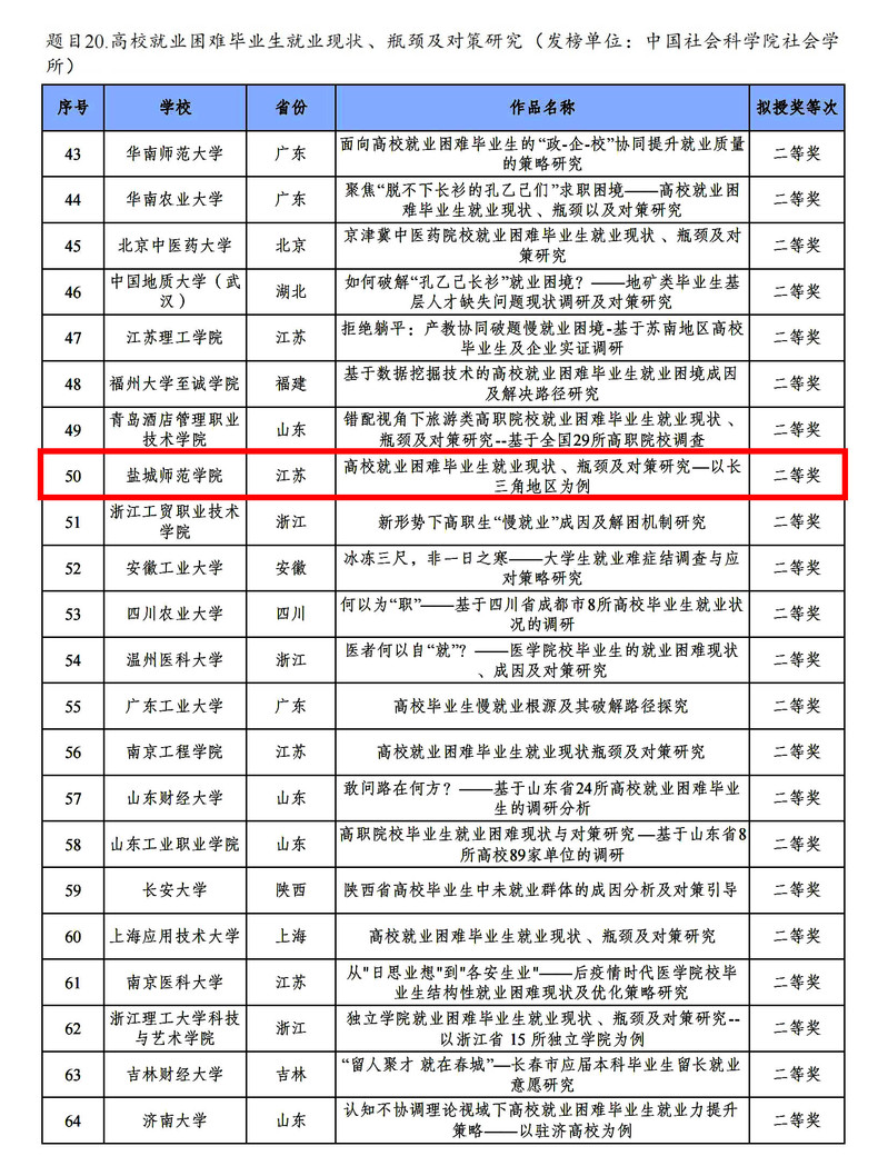 《高校就业困难毕业生就业现状、瓶颈及对策研究—以长三角地区为例》团队揭榜中国社科院社会学研究所发布的榜单,按照发榜单位“高校就业困难毕业生就业现状、瓶颈及对策研究”的要求,作品针对长三角地区的高校就业困难毕业生展开调查,利用文本挖掘技术聚焦长三角地区高校就业困难毕业生就业困境,并建立结构方程模型,深入分析长三角地区高校就业困难毕业生的就业困境、瓶颈及就业需求,剖析问题形成的原因,为更加精准有效地制定就业服务和就业支持政策提供参考