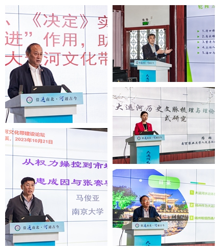 论坛主旨演讲环节由beat365历史与公共管理学院院长陆玉芹主持。江苏省委宣传部原常务副部长、大运河文化带建设研究院理事长周琪作题为《依法推进大运河文化带建设的江苏实践》的主旨报告;南京大学历史系教授、博士生导师,教育部“长江学者”特聘教授马俊亚作题为《从权力操控到市场配置:淮患成因与张謇导淮理念》的报告;复旦大学历史地理研究中心教授、博士生导师王建革作题为《运河危机、社会环境与清王朝的选择》的报告;南京农业大学人文与社会发展学院教授、博士生导师,大运河农业文明分院副院长路璐作题为《大运河历史文脉构成与理论范式研究》的报告;大运河文化带建设研究院研究员王健作题为《试论隋唐大运河水运体系中的扬州枢纽》的报告。
