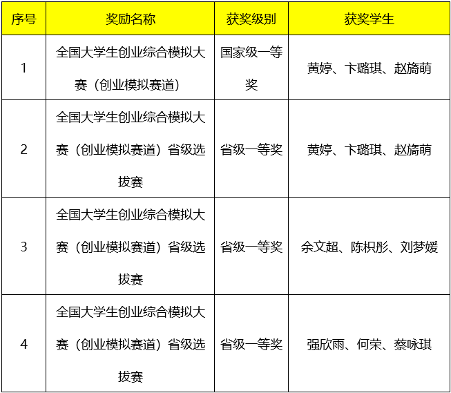 全国大学生创业综合模拟演训活动(创业模拟赛道)赛事2020 年纳入《全国普通高校大学生竞赛排行榜》A类榜单内项目。该赛事通过模拟经营初创企业,开展市场与消费者研究、产品设计开发、制造生产、开发市场并销售,在模拟实景下与其他竞争团队进行对抗性竞争,以期提升大学生创新创业能力、商业计划书撰写与展示能力及企业运营管理实践能力。