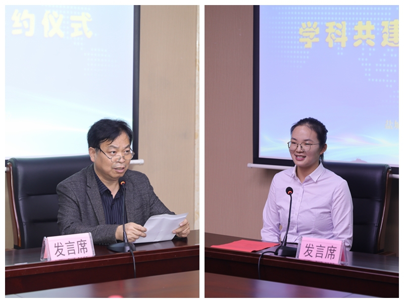 仪式上,各二级学院学科研究组组长与附属实验学校(新洋第二实验学校)相关教研组组长分别签约。二级学院学科研究组组长代表史成明教授、附属实验学校(新洋第二实验学校)教研组组长代表刘玉琴老师分别发言,共同表达对未来双方深度合作的期待。