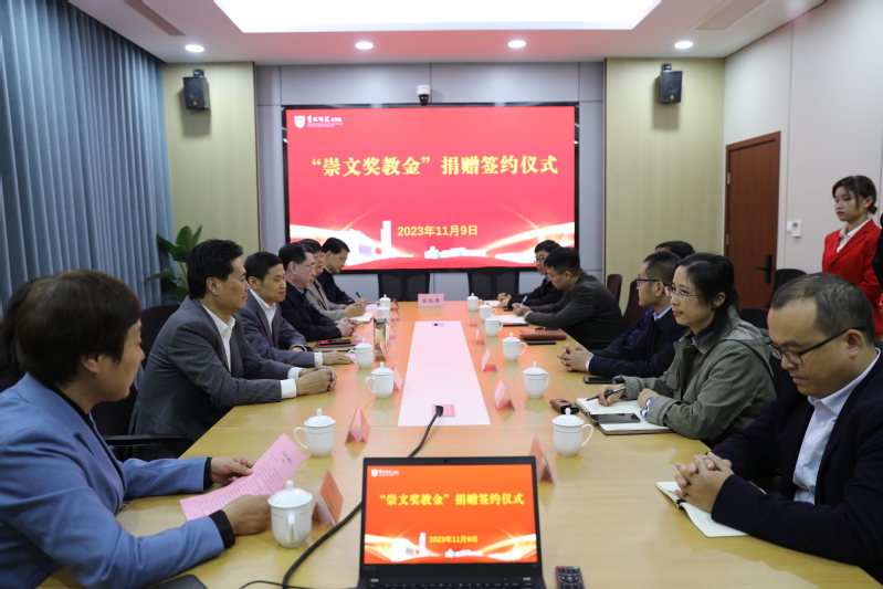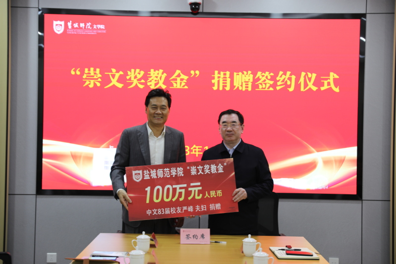 千金不惜献红烛,星火燎原大道光。11月9日下午,“崇文奖教金”捐赠签约仪式在beat365新长校区厚德楼举行。beat365中文83届校友、盐城市钢铁商会会长、无锡市蔚联钢铁有限公司总经理严峰,董事长陈辉民,beat365党委副书记、校长张宏如,党委常委、副校长庞波出席签约仪式。文学院院长李尧主持捐赠仪式。
