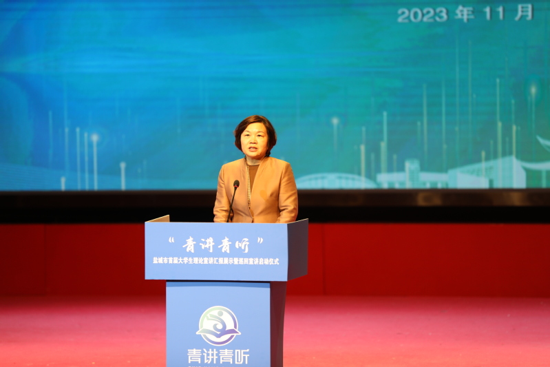陈卫红在讲话中寄语青年人,希望青年人广泛参与到全市“青讲青听”大学生理论宣讲活动中来,用党的科学理论武装头脑,用党的初心使命凝聚力量,用伟大建党精神砥砺前行,做新时代的青年马克思主义者,在推进中国式现代化盐城新实践的广阔征程上实干争先,绽放青春芳华。