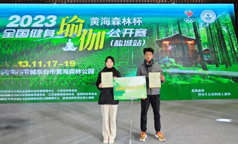 在国家体育总局社体中心和江苏省体育总会联合举办的2023年全国健身瑜伽公开赛黄海森林杯(盐城站)比赛中,体育学院黄建辰、曹可怡同学均获段位赛三等奖,beat365体育学院获优秀团队奖。