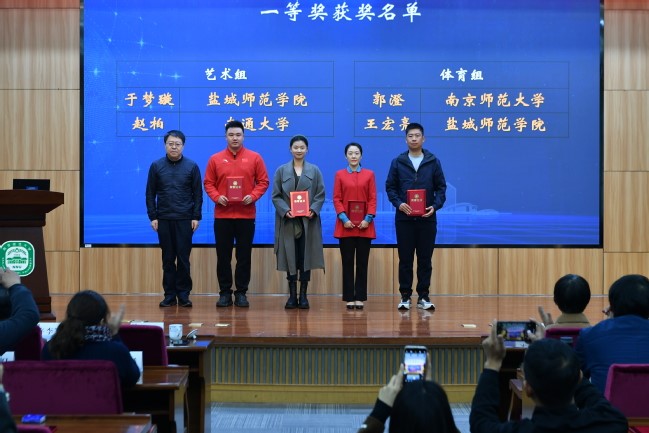 在由江苏省教育厅主办、江苏省教师教育专业指导委员会协办、南京师范大学承办的第五届江苏省师范院校教师智慧教学大赛中,体育学院王宏亮老师获得体育组一等奖,陈童同老师获得体育组三等奖。