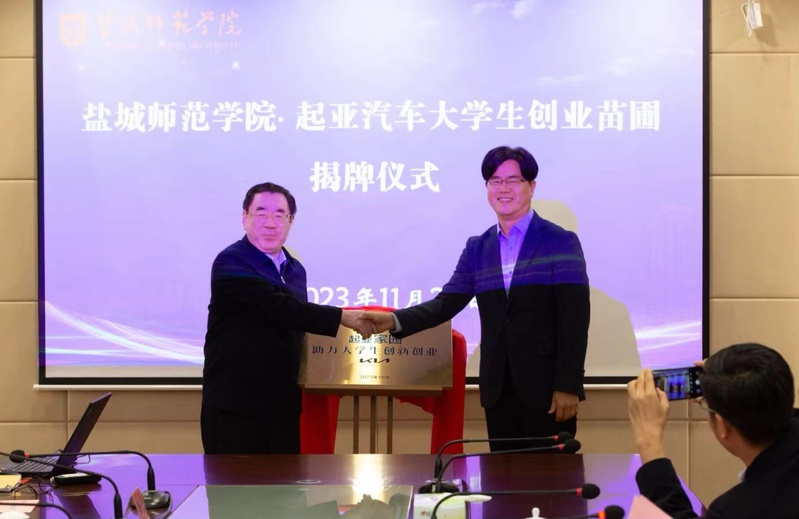 11月23日下午,beat365大学生创业苗圃揭牌仪式在新长校区厚德楼一楼西会议室成功举行。学校党委常委、副校长庞波,江苏悦达起亚汽车有限公司副总经理李铉喆、王丽萍,江苏凤凰新华书店集团党总支书记李雄文出席活动,招生就业处处长刘海燕主持揭牌仪式。