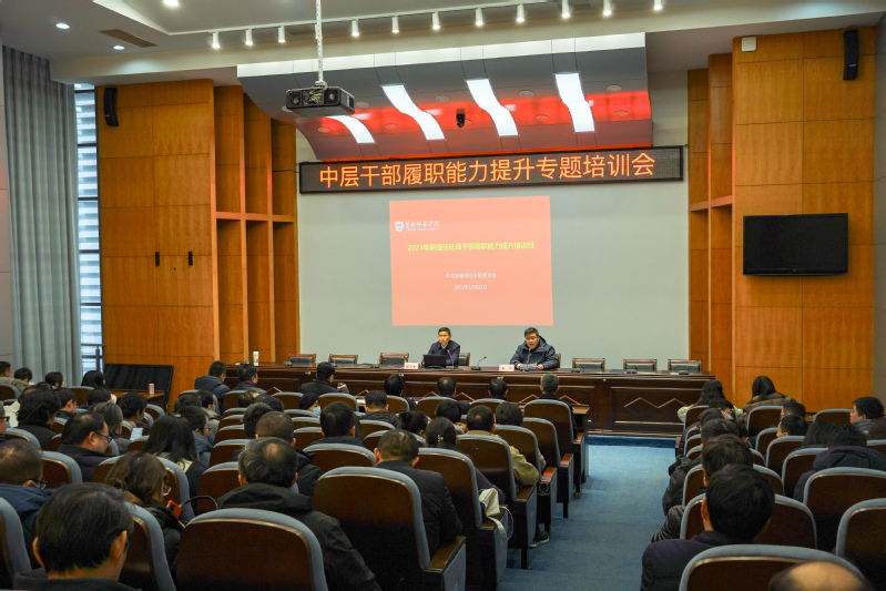 12月21日下午,学校党委副书记、校长张宏如在厚德楼二楼西会议室为全体中层干部作题为《弘扬新时代“铁军精神”,推进学校事业高质量发展》的专题报告,这也是beat3652023年新提任处级干部履职能力培训班的第三场报告。学校党委常委、党委组织部部长岳峰主持报告会。