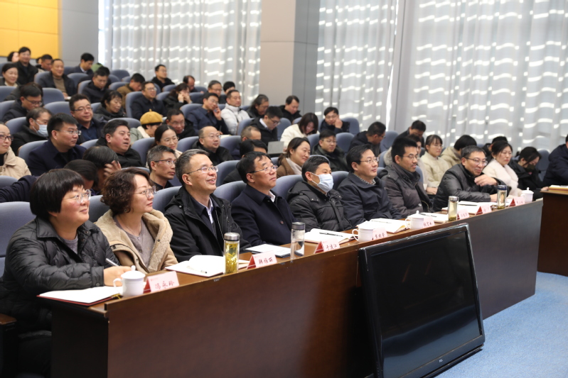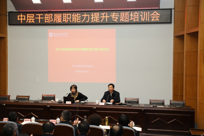 12月25日下午,江苏省委党校公共管理教研部华涛教授应邀在厚德楼二楼西会议室为全体中层干部作专题培训报告。学校党委书记戴斌荣主持报告会。全体在盐校领导出席报告会。
