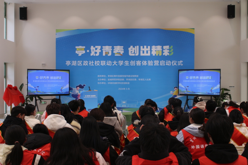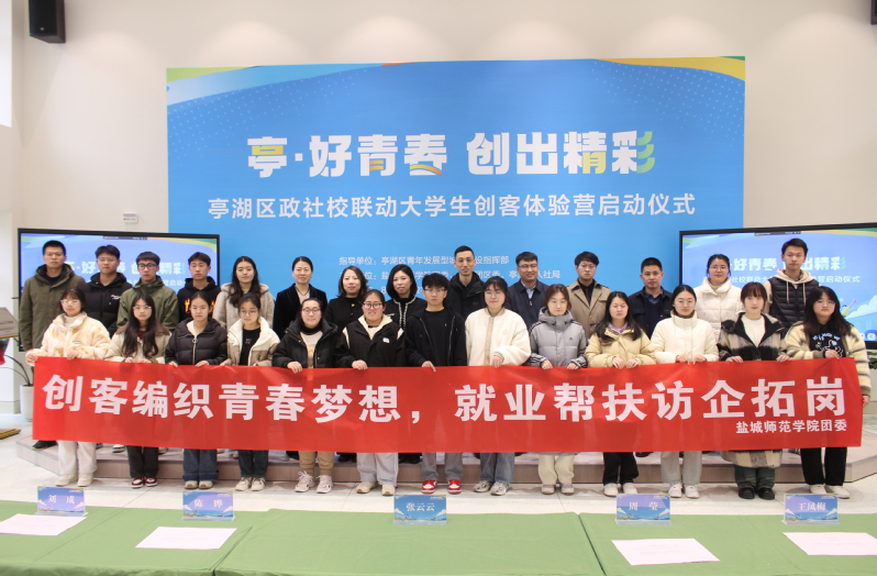 为深度开展校地、校企合作,全力促进学生更高质量就业,3月13日下午,校团委与亭湖团区委、亭湖区人社局联合举办校地联动大学生创客体验营启动仪式。亭湖区委常委、组织部部长、统战部部长张云云,亭湖团区委书记周莹、亭湖区人社局副局长朱宏军、上海瑞谷传祺创业投资管理有限公司总裁王凤梅,beat365团委书记陈晔、团委副书记刘成及40名学生代表参加活动。