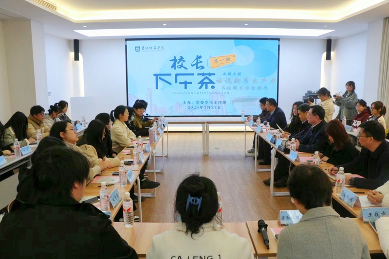 3月27日下午,学校在新长校区学工楼二楼“悦空间”举办以“话说新质生产力&校园生活面面观”为主题的本学期首期“校长下午茶”活动。学校党委副书记、校长张宏如,党委常委、副校长庞波出席活动,学生工作部部长、学生工作处处长李健明主持活动。