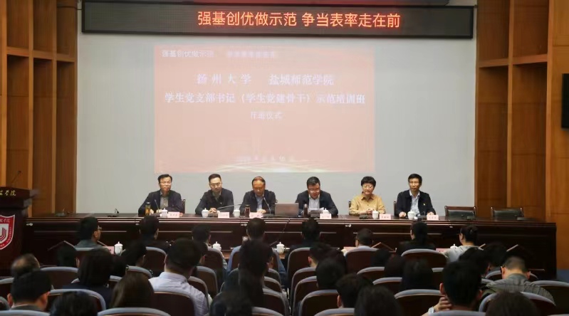 开班式前,学校党委书记戴斌荣、党委副书记于建江分别会见了孙鹏一行。开班式上,孙鹏从百年老校、改革名校、规模大校等方面介绍扬州大学基本情况,并着重讲解了扬州大学高质量党建引领高质量发展的“六聚焦六提升工程”。他在动员讲话中指出,党支部直接联结着教职工和学生,与师生联系最直接、最紧密,要以党的政治建设为统领,把党支部建设成为高校党的领导体系和工作体系的牢固地基,成为高校全面从严治党的神经末梢,成为落实党的教育方针和中央决策部署的坚强战斗堡垒。岳峰在致辞中从学校办学、学校党建高质量发展、学生党支部建设等方面介绍相关情况,并希望双方加强联系与合作,促进党建高质量发展,努力开创教育事业的美好明天。