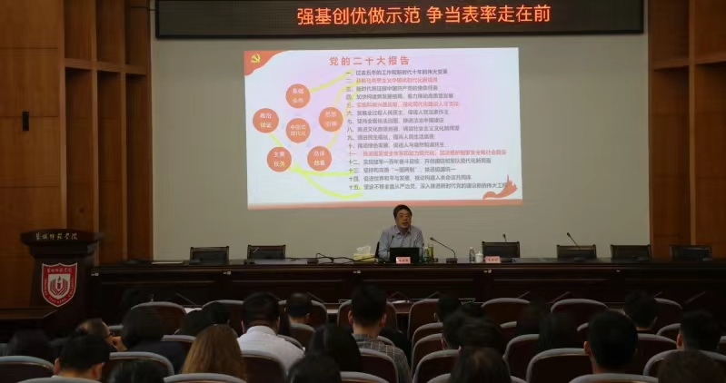 开幕式后,学校党委常委、纪委书记、省监委派驻监察专员韩雅丽作党纪学习教育专题报告。盐城新四军干部学院徐贵耀教授作《习近平总书记关于党的建设的重要思想》的专题报告。