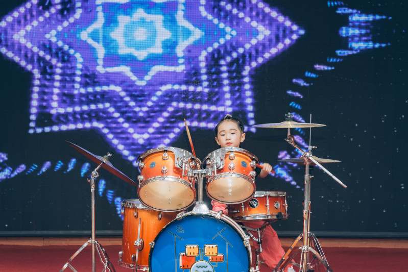 灯光闪耀、目光聚焦,主持人精神饱满、神采飞扬,文艺节目精彩纷呈。新颖独特的创意时装秀,幽默诙谐的《小鸡小鸡》《八戒八戒》,丰富多彩的才艺表演和动感球操,惟妙惟肖的情景剧《老鼠来了》,轻快优美的舞蹈《竹竿舞》《上青山》《爱的华尔兹》,赢得台下观众阵阵掌声。当献礼新中国成立75周年的情景剧《这盛世如您所愿》表演结束,在场的所有观众都被孩子们认真的表演深深打动,大家手舞国旗一同唱响雄壮有力的《歌唱祖国》,将全场气氛推向了高潮。