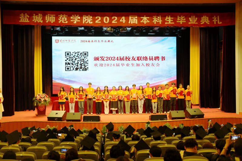 典礼上,学校各地校友会也纷纷发出祝福视频,校领导为2024届校友联络员代表颁发聘书。毕业生代表向包括任课教师、辅导员、班主任、后勤人员在内的学校各类教职工代表献花,感谢他们一直以来的默默付出和辛勤奉献。