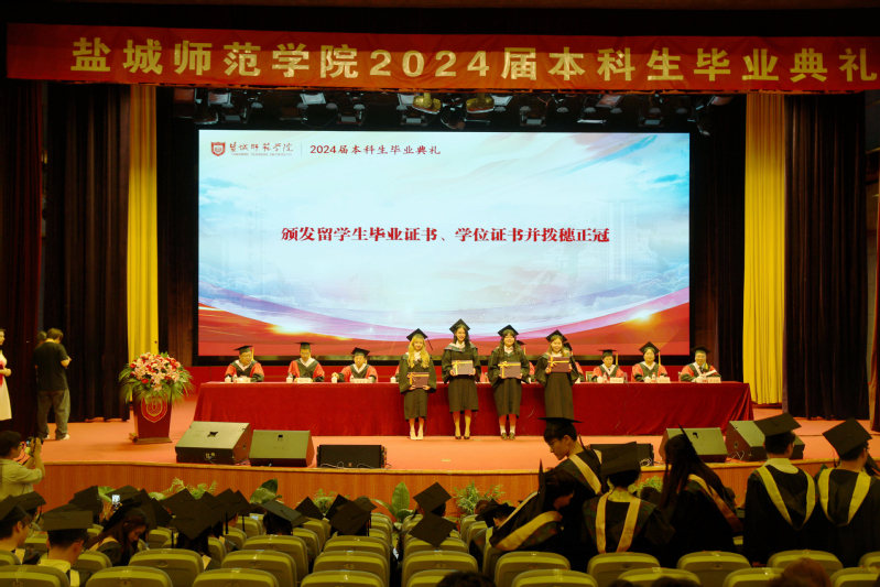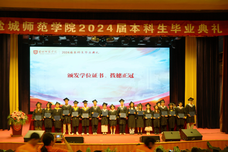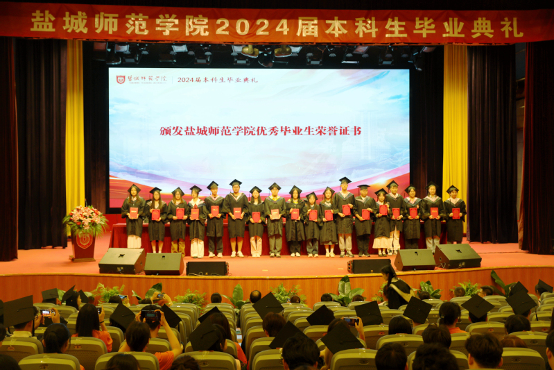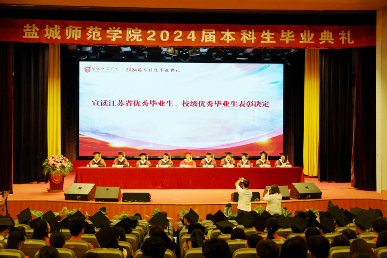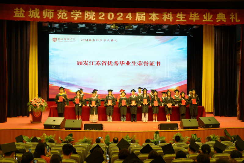 学校党委副书记于建江宣读江苏省优秀毕业生、校级优秀毕业生表彰决定,党委常委、副校长毕凤珊宣读授予学士学位的决定。主席台领导为毕业生代表颁发优秀毕业生荣誉证书、毕业证书和学位证书,并为毕业生拨穗正冠。