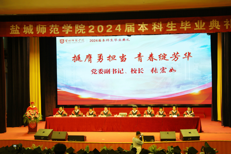 又是一年毕业季,又是一年离别时。6月12日上午,学校2024届本科生毕业典礼在主会场新长校区大学生活动中心隆重举行,各二级学院设立分会场同时通过线上直播观看典礼。在盐校领导张宏如、于建江、庞波、张桂华、汤克明、毕凤珊、徐华出席典礼。学校党委常委、副校长庞波主持典礼,党委副书记、校长张宏如致辞。