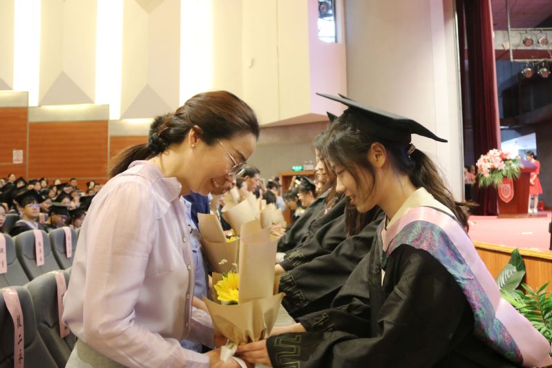 优秀毕业生代表向教职工代表献花