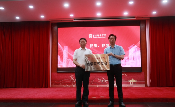 会上,戴斌荣为商学院校友会授旗授牌,并与庞波一同为组织架构成员颁发聘书。