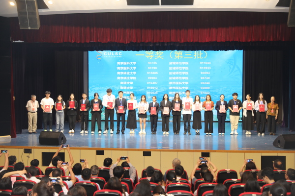 江苏省大学生生命科学竞赛委员会秘书长、南京师范大学戴亦军教授代表竞赛委员会宣读本届竞赛决赛的获奖名单。本次决赛共决出省级一等奖57项,二等奖111项。与会部分评审专家为获奖团队代表颁奖。