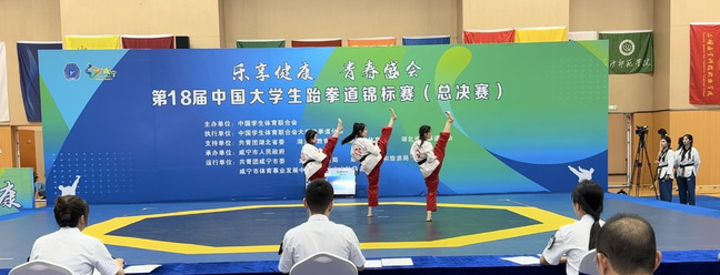 7月22日至26日,第18届中国大学生跆拳道锦标赛(总决赛)在湖北省咸宁市举行。本次赛事由中国学生体育联合会主办,咸宁市人民政府承办,中国学生体育联合会大学生跆拳道分会执行,共有152所高校的1000多名运动员参赛。