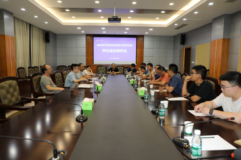检查组组长陈晓猛传达省教育厅对高校实验室安全管理现场调研检查的工作意义、工作重点和工作程序。学校国有资产与实验室管理处处长蔡志宏从基本情况、常规工作、重点工作、特色工作、取得成绩、存在不足等方面作了实验室安全管理工作汇报。