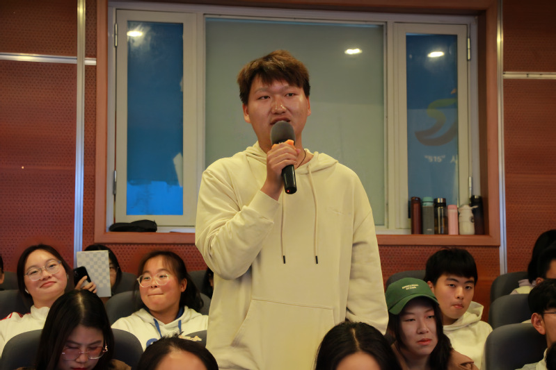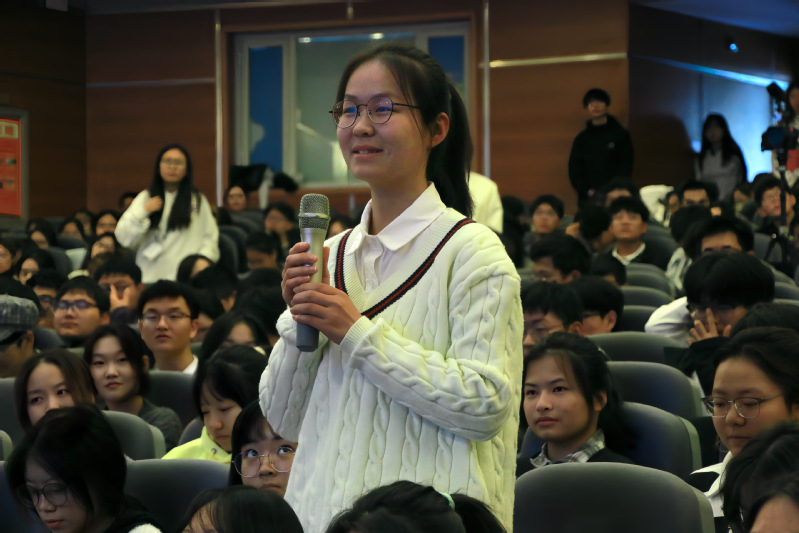 “作为师范生,将来的目标是考研、考编还是考公呢?”“如何对生涯规划动态变化进行心态调整?”“理想与未来就业有偏差怎么办?”……同学们积极举手,热切地分享着自己遇到的种种困惑与挑战。张宏如耐心地解答同学们提出的“困惑点”,为学生如何更好地度过大学时光提供建议,给予专业的生涯规划指导。