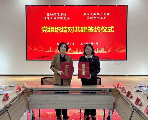 信息工程学院党委与盐城市大数据产业园管理办党工委签订《结对共建协议书》,双方将在党建引领、资源共享、人才培养、科研合作等方面加强深度合作,共同探索党建与业务融合发展的新路径,促进高质量发展。