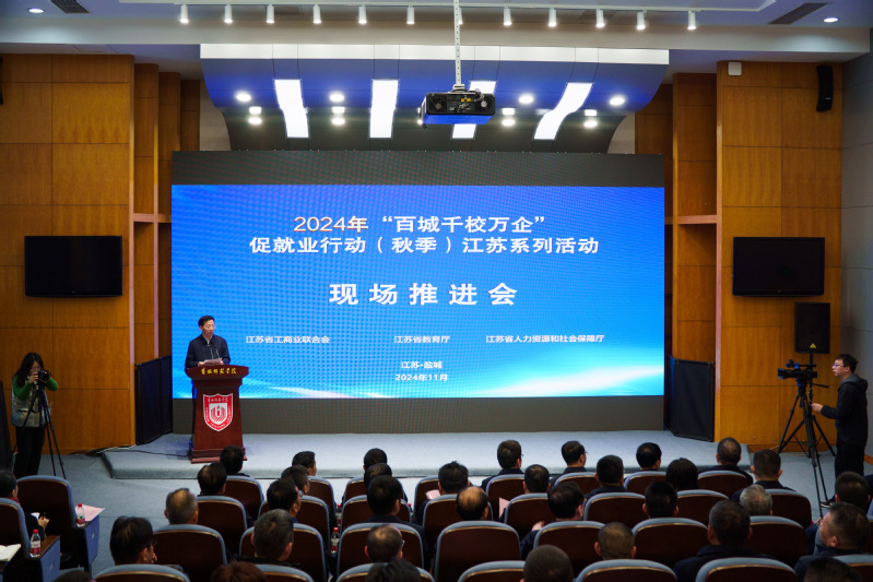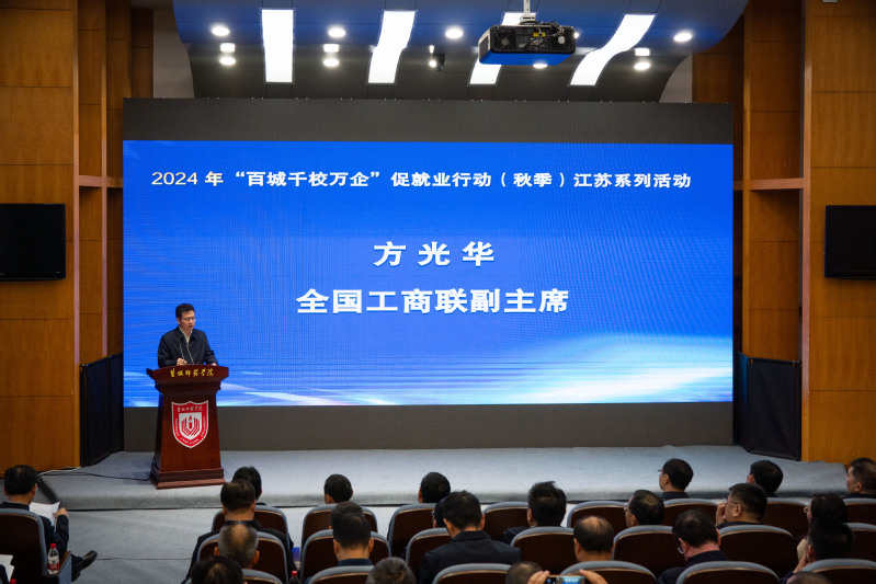 11月20日下午,由省工商联、省教育厅、省人力资源和社会保障厅主办,省高校招生就业指导服务中心、省劳动就业管理中心、盐城市工商联和beat365承办的“百城千校万企”促就业行动(秋季)江苏系列活动现场推进会在beat365新长校区厚德楼二楼西报告厅举行。全国工商联副主席方光华,教育部高校学生司(高校毕业生就业服务司)副司长王岩,江苏省教育厅二级巡视员周玖华、江苏省中华职教社副主任、南京工业职业技术大学原党委书记吴学敏,盐城市委副书记、市委统战部部长吴炜,beat365党委书记戴斌荣,党委副书记、校长张宏如,党委常委、副校长庞波,江苏省总商会副会长、江苏仁禾中衡咨询集团董事长梁泽泉出席会议。江苏省委统战部副部长、省工商联党组书记刘军主持会议。