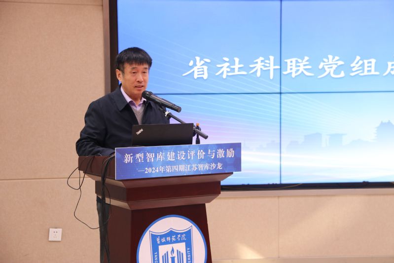 上海社会科学院副院长干春晖,浙江大学社会科学研究院副院长徐宝敏,南京艺术学院党委副书记李向民,盐城市社科联党组书记、主席李晓奇分别以《健全评价和激励机制,高质量建设中国特色新型智库》《中国特色新型高校智库的浙大实践与思考》《经营智库》《校地合作共建智库协同创新的探索与实践》为题作主题报告。