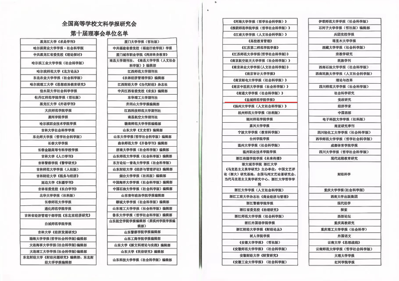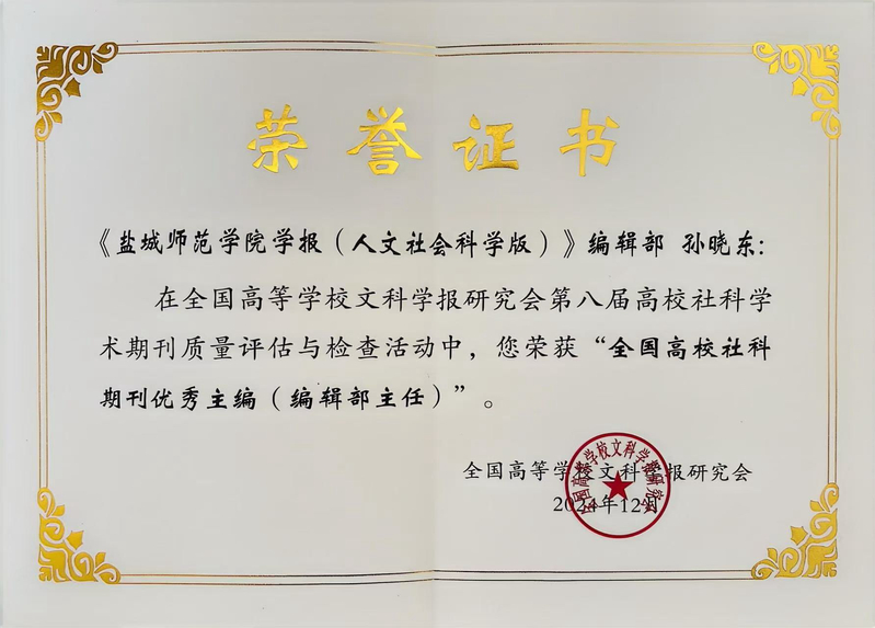 近日,全国高等学校文科学报研究会第十次会员代表大会在广州召开,来自全国高校学报界的主编、编辑七百余人与会。本次会议投票选举产生全国高等学校文科学报研究会第十届理事会。《盐城师范学院学报(人文社会科学版)》当选为理事单位。学报副主编、编辑部主任孙晓东获评优秀主编(编辑部主任)。