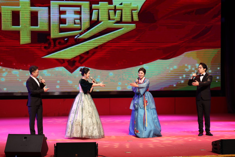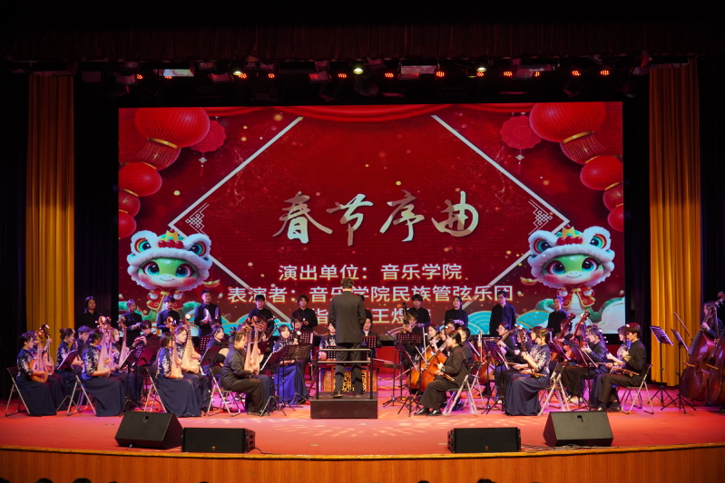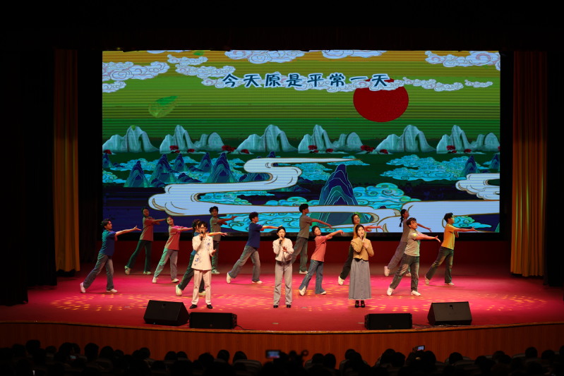 唢呐独奏 《百鸟朝凤》热情欢快的旋律与百鸟和鸣之声,使整个演出现场充满了喜庆和欢乐的气氛。三重唱 《上春山》将观众带入那云雾缭绕、繁花似锦的春山之中,优美的旋律中流淌着岁月静好。钢琴演奏《伊甸园》组曲第三首丰富的层次与动人的旋律,引领观众进入激动人心的音乐世界。《舞蹈串烧》形式多样,既有对古典名著的演绎,也有少数民族舞蹈的独特风韵。整场晚会在四重唱《向往》中落下帷幕。以歌声诉说激情,用舞蹈传递力量,师生们的精彩表演赢得全场阵阵喝彩和热烈掌声。