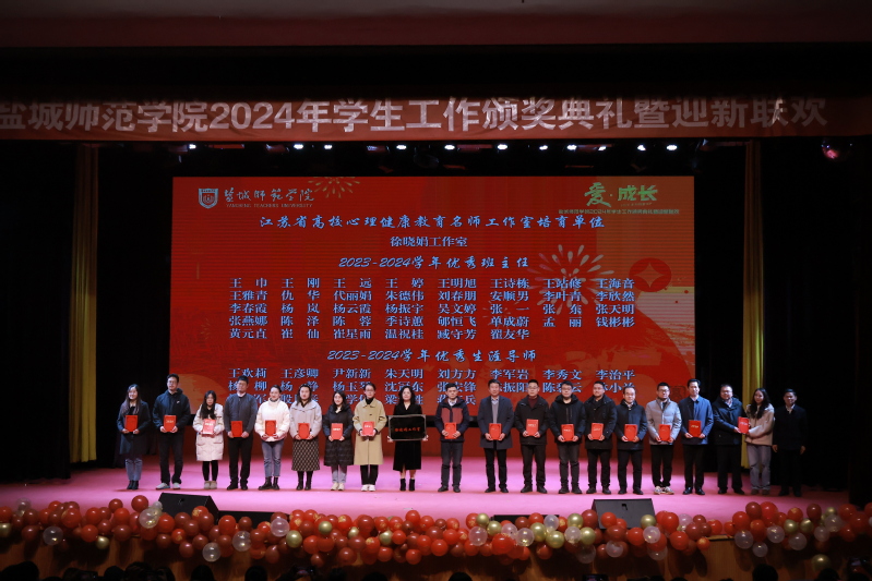 一年一度的学生工作颁奖典礼暨迎新联欢是beat365学工文化育人的具体举措。整场活动坚持思想性、群众性、艺术性相统一,将爱国主义、奋斗青春的时代主题与辅导员、心理育人、资助育人及“王强班”等元素相融合,生动诠释盐师学工人用心伴学生成长、用爱助学生成才的教育实践与“为党育人、为国育才”的使命担当。